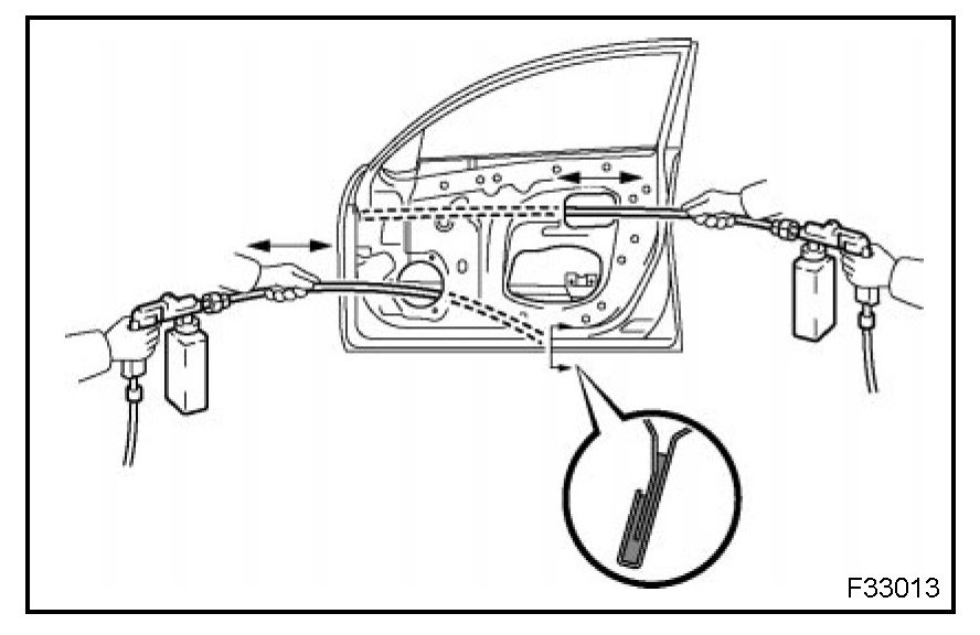 PURPOSE: For water-proofing and anti-rust measures, always apply the body sealer to the body panel seams and hems of the doors, hood, etc.