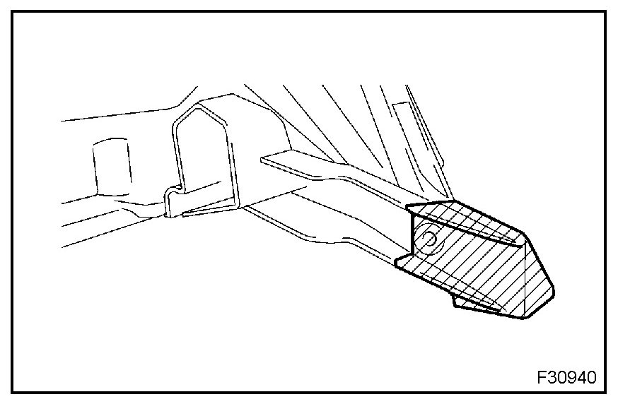 NOTICE: After cutting off the part, place the headlight protector retainer against the bosses, and gradually file away the old bracket if it interferes with the installation of the supply retainer.