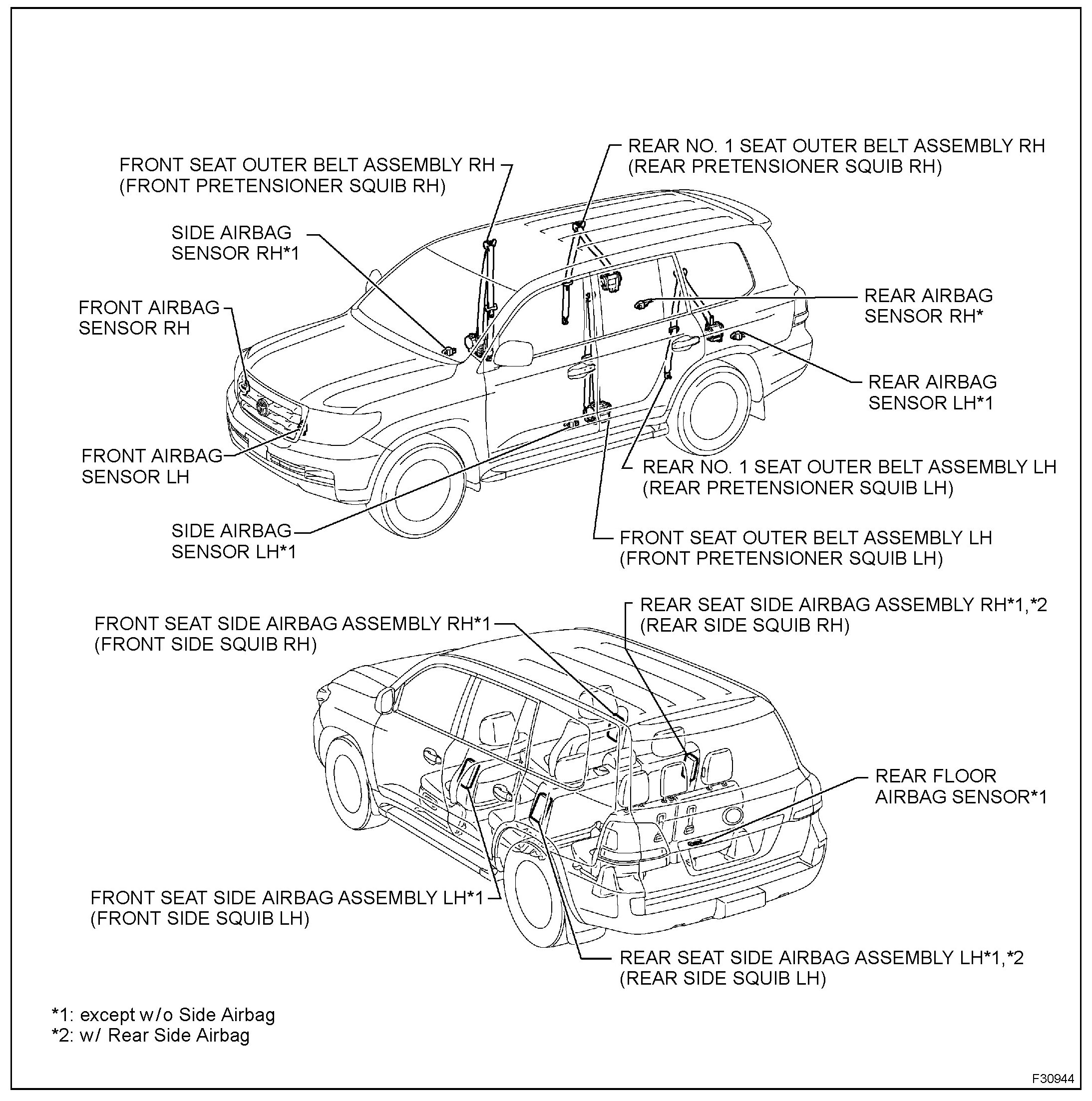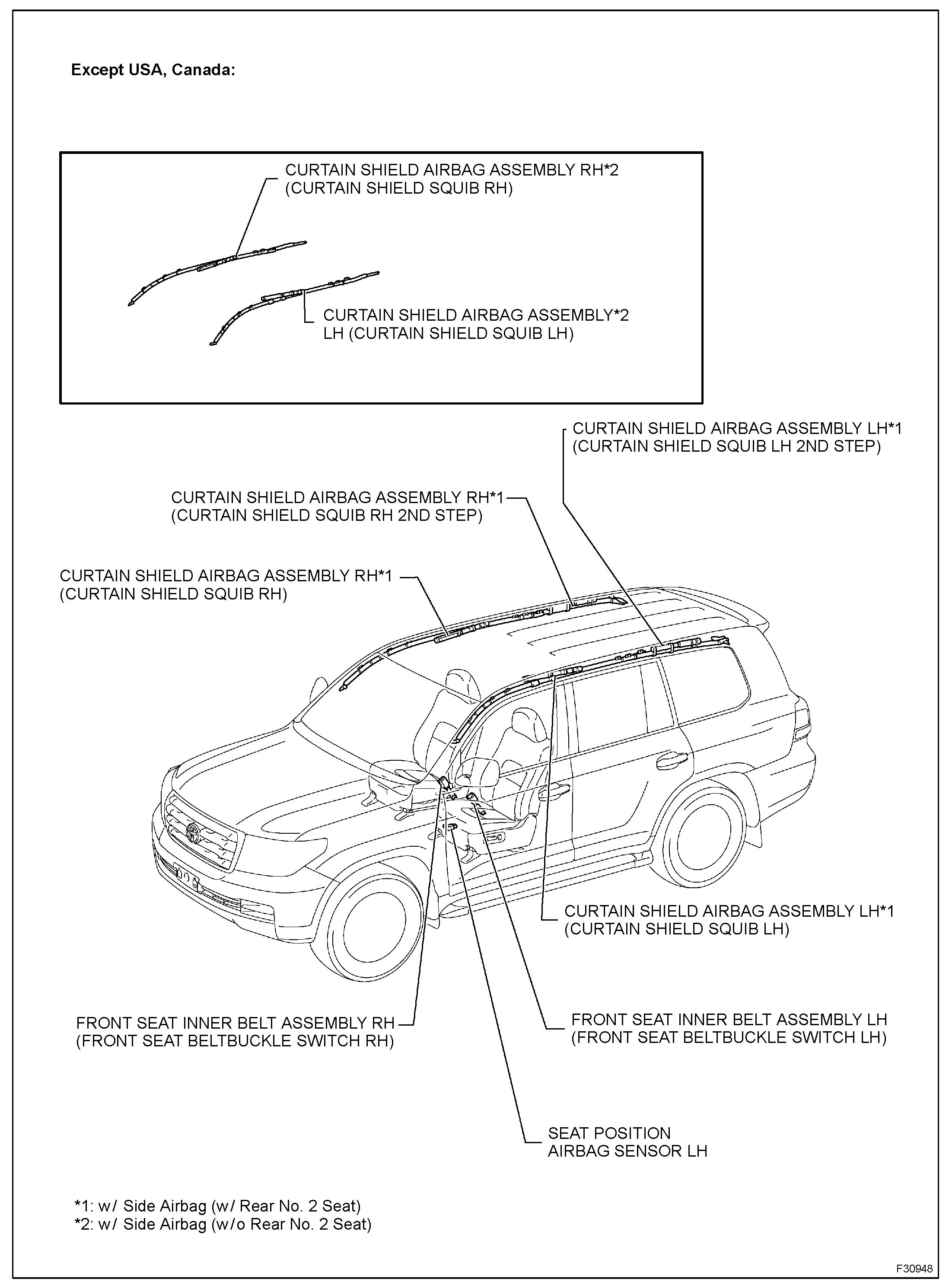 4. Do not allow the front airbag sensors, side airbag sensors, rear side airbag sensors, center airbag sensor, rear floor airbag sensor or seat position sensor to become heated to high temperatures.