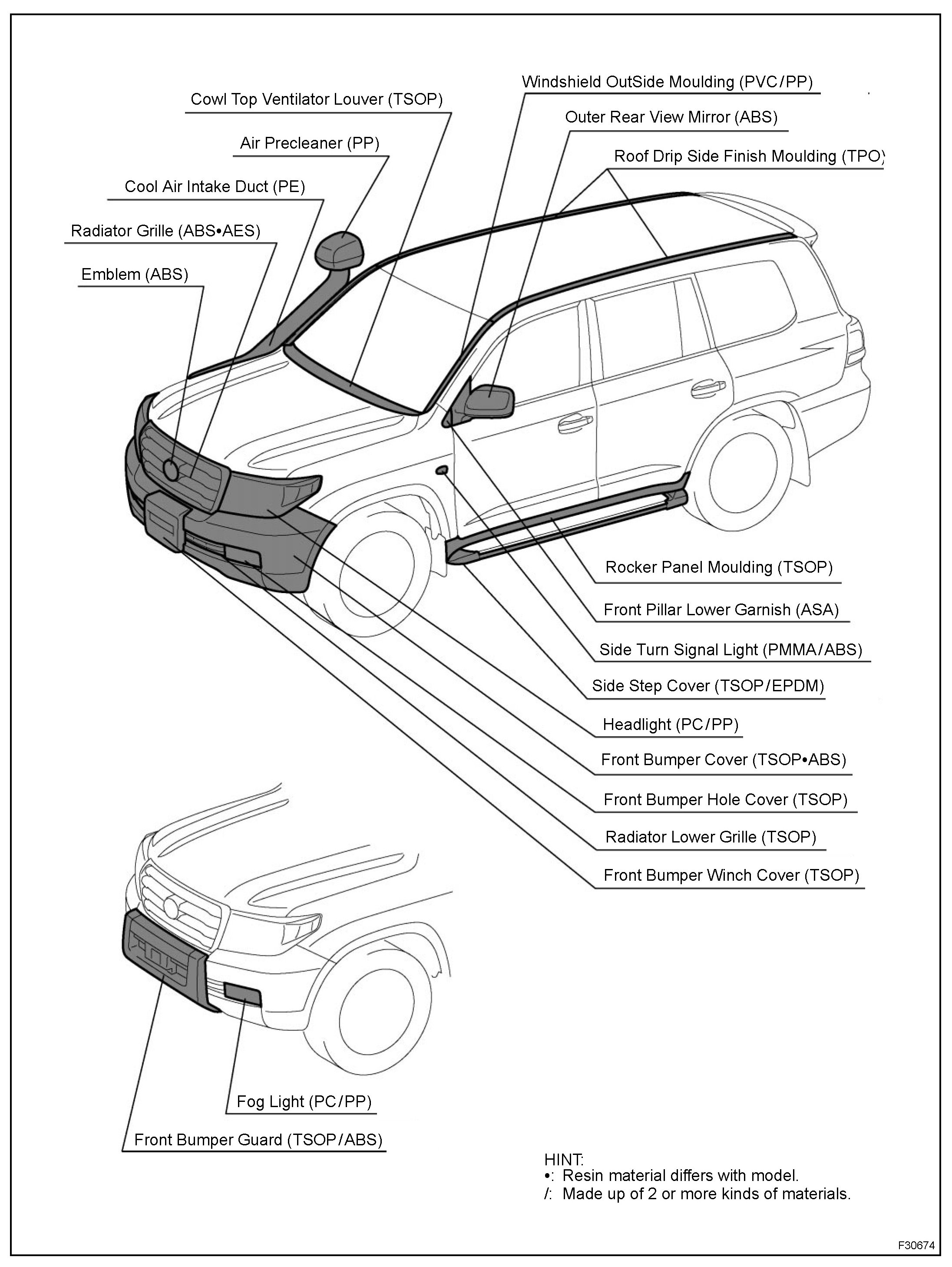 b. THE PLASTIC BODY PARTS MATERIAL LIST