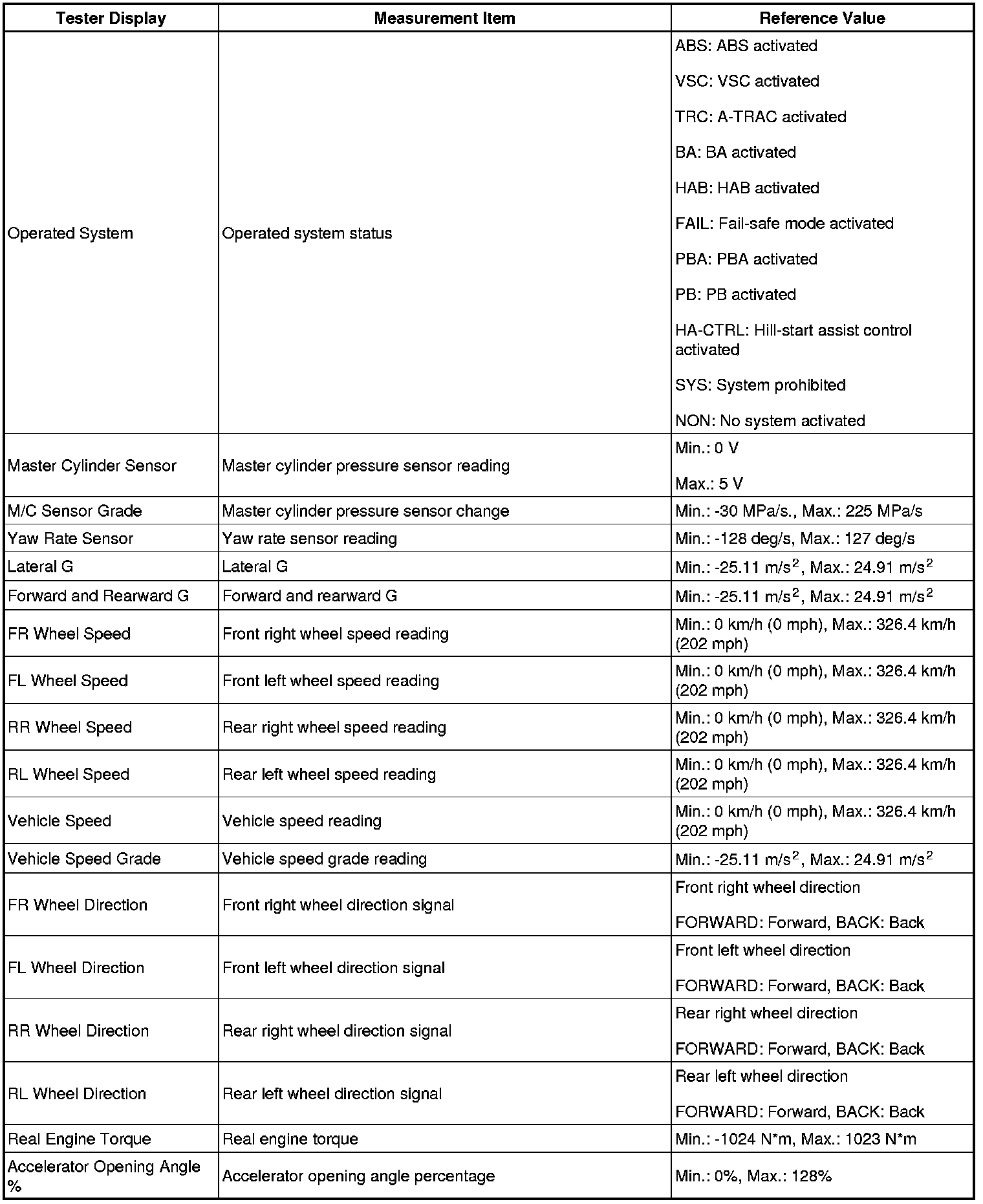 - Freeze frame data at the time the brake control system operates: The skid control ECU stores and updates the data whenever the brake control system operates. When the ECU stores data at the time a DTC is stored, the data stored when the brake control system operated may be cleared.