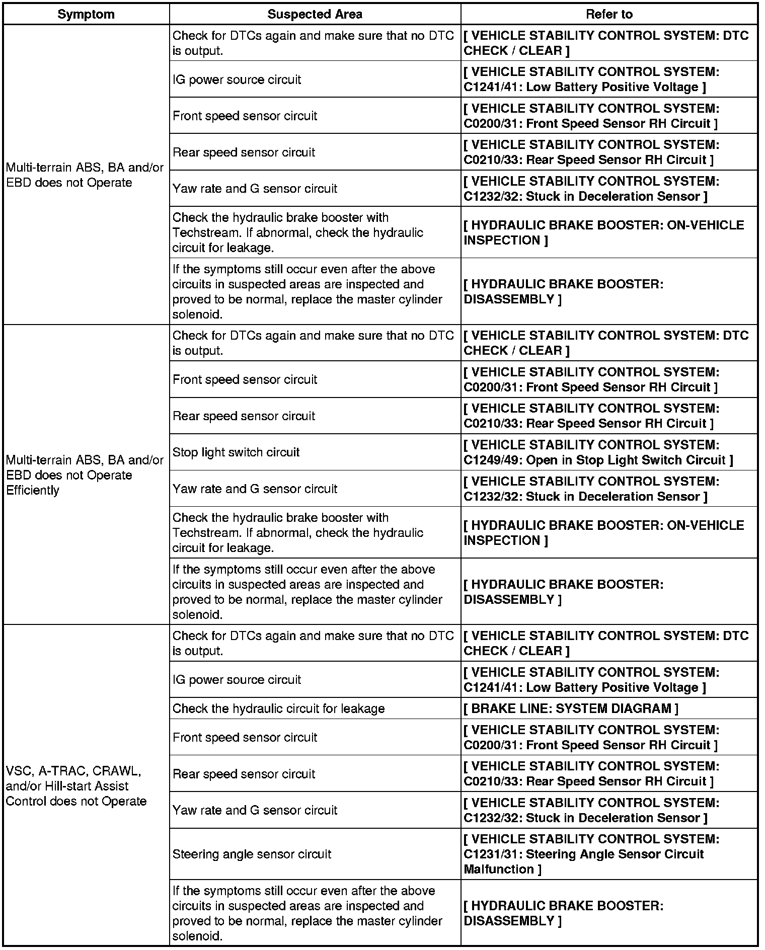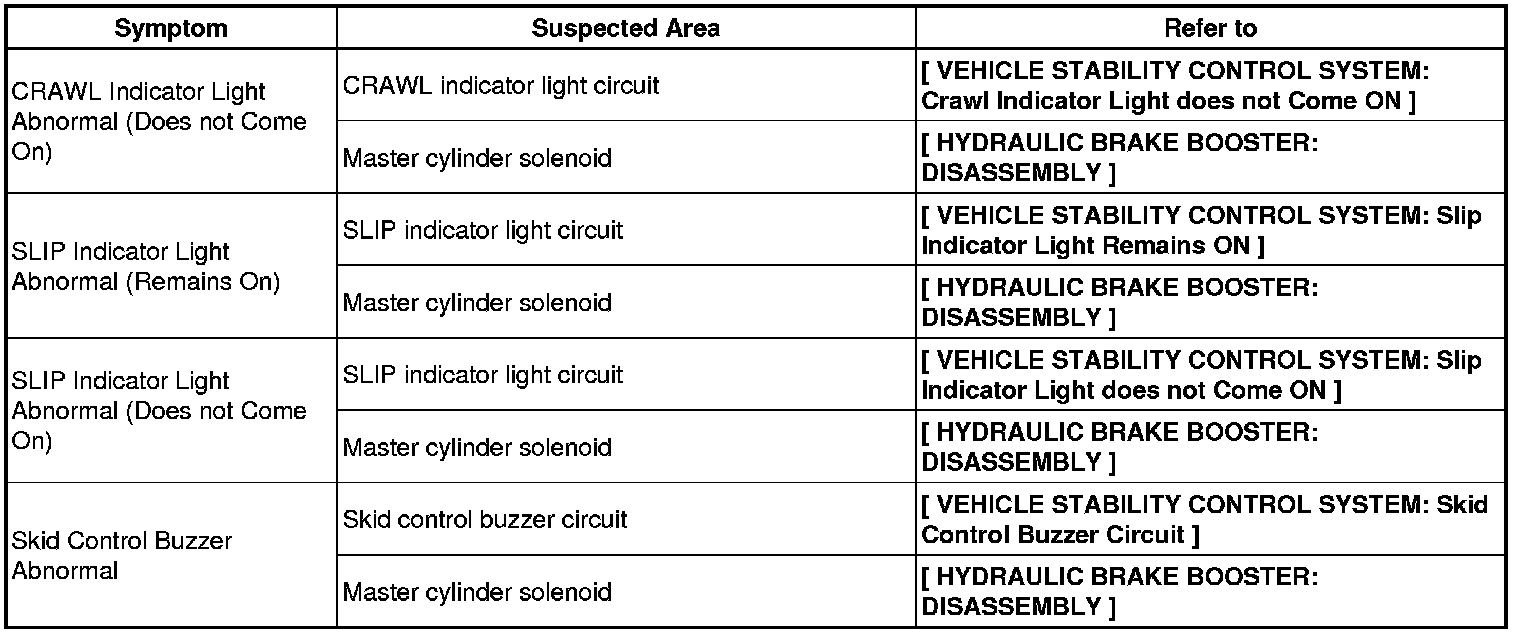 BRAKE CONTROL / DYNAMIC CONTROL SYSTEMS: VEHICLE STABILITY CONTROL SYSTEM: PROBLEM SYMPTOMS TABLE