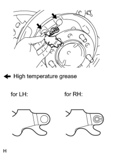 (a) Apply high temperature grease to the areas of the backing plate that contact the shoe.