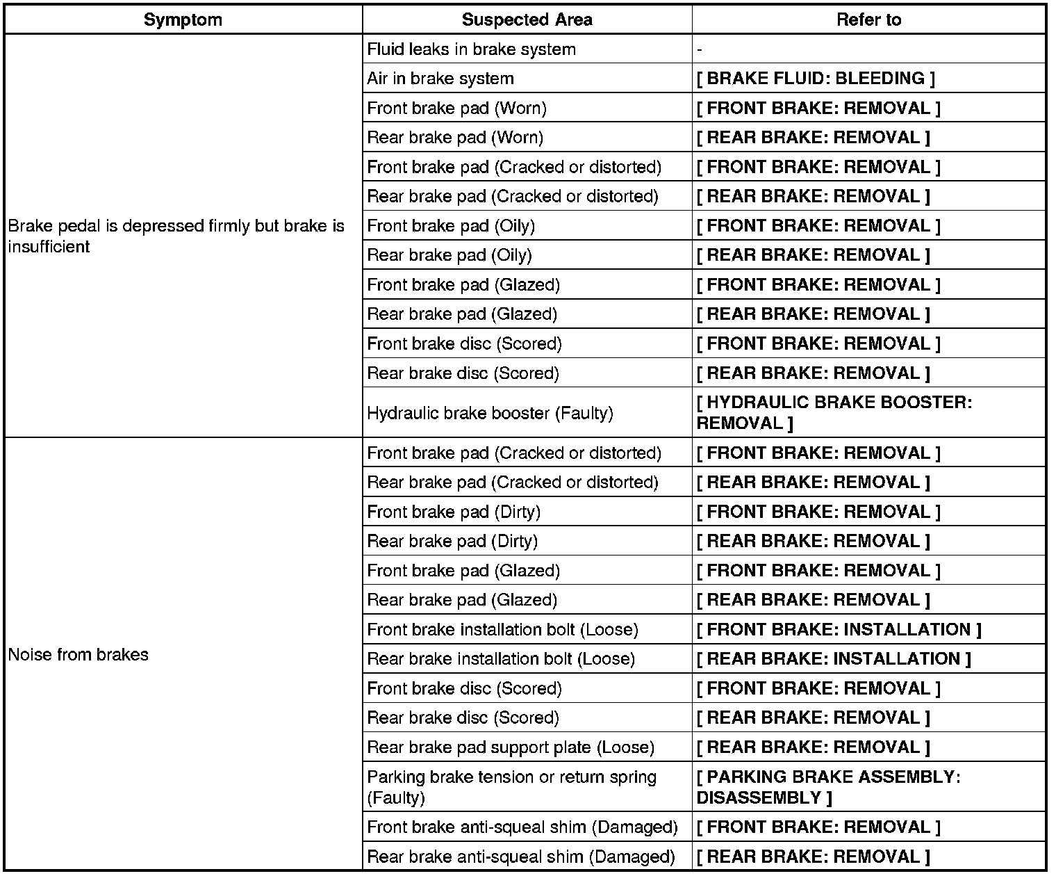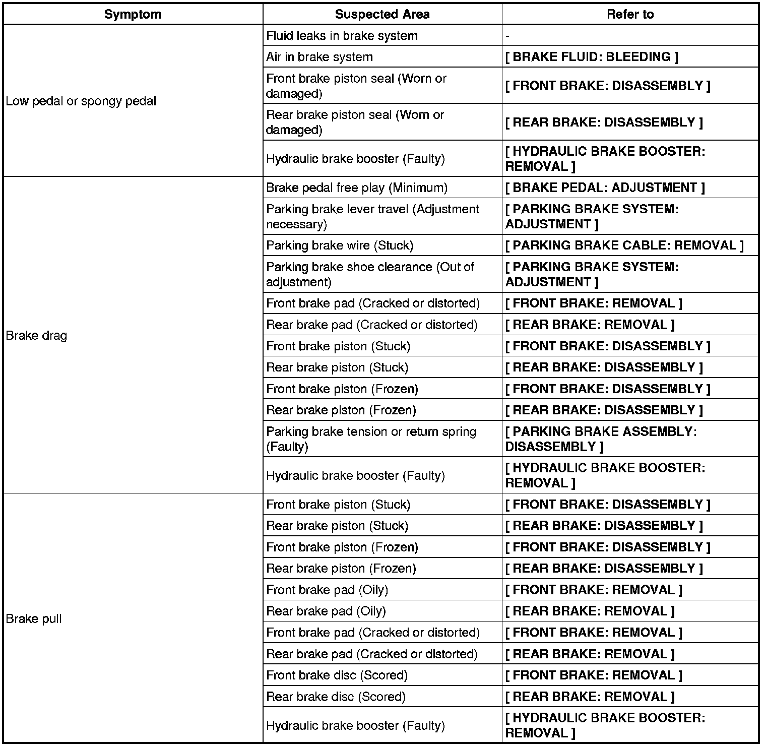 BRAKE SYSTEM (OTHER): BRAKE SYSTEM: PROBLEM SYMPTOMS TABLE
