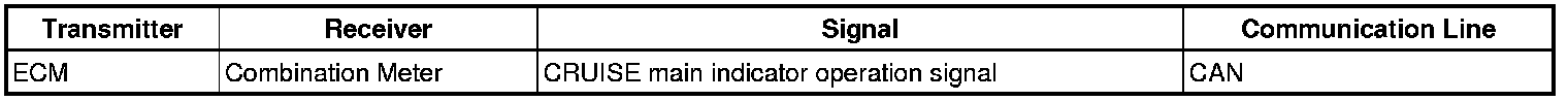 - The ECM illuminates the CRUISE main indicator light on the combination meter when it receives the cruise control main switch on signal.