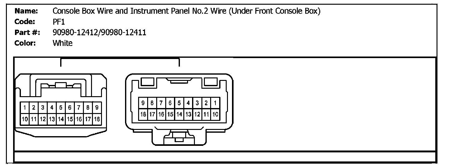 PF1 (Console Box Wire And Instrument Panel No.2 Wire (Under Front Console Box)):