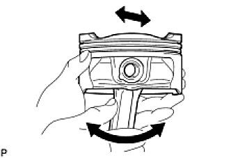 (2) Rotate the piston back and forth on the piston pin. Check the fitting condition.