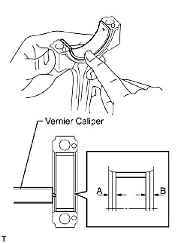 (b) Using a vernier caliper, measure the distance between the connecting rod and bearing cap edges, and each connecting rod bearing edge.