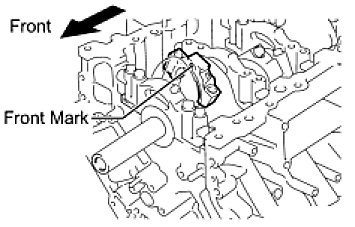 (b) Confirm the front marks and numbers of the crankshaft bearing caps, and install the crankshaft bearing caps on the cylinder block.