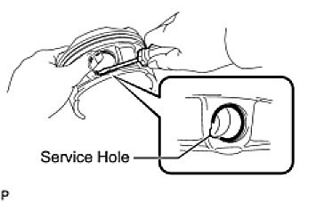 HINT: Be sure that the end gap of the snap ring is not aligned with the service hole of the piston.