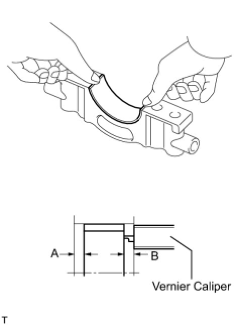 (2) Using a vernier caliper, measure the distance between the crankshaft bearing cap edge and the lower bearing edge.