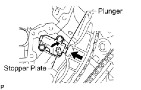 (a) Move the stopper plate clockwise to release the lock, and push the plunger deep into the tensioner.