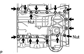 NOTE: Be careful not to damage the contact surfaces of the cylinder block and oil pan.