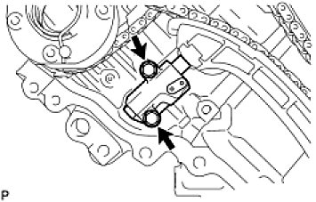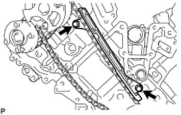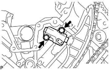 (b) While pushing down the No. 2 chain tensioner, insert a pin of dia1.0 mm (0.0394 in.) into the hole to fix it in place.