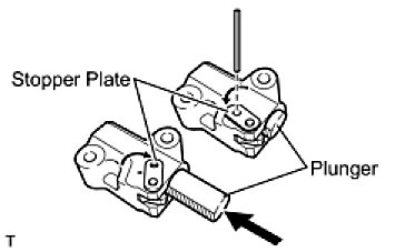 (a) Move the stopper plate clockwise to release the lock, and push the plunger deep into the tensioner.