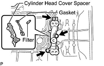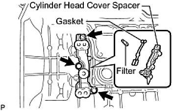 (2) Install a new gasket and the cylinder head cover spacer with the 3 bolts.