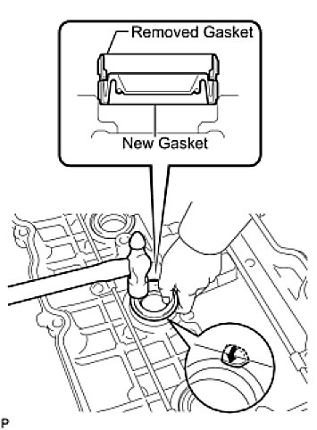 (b) Using the removed gasket and a hammer, tap in a new gasket until it stops.