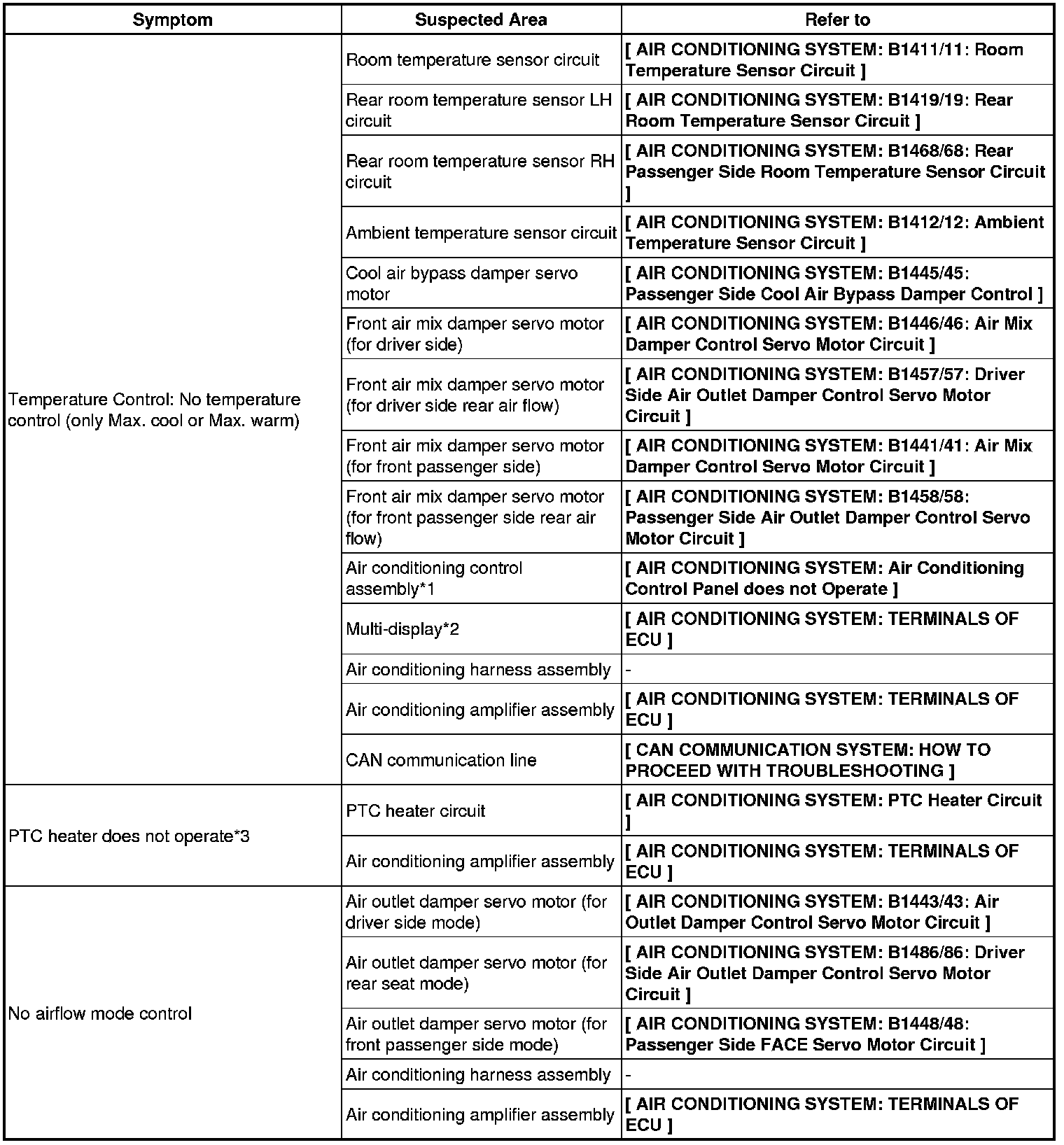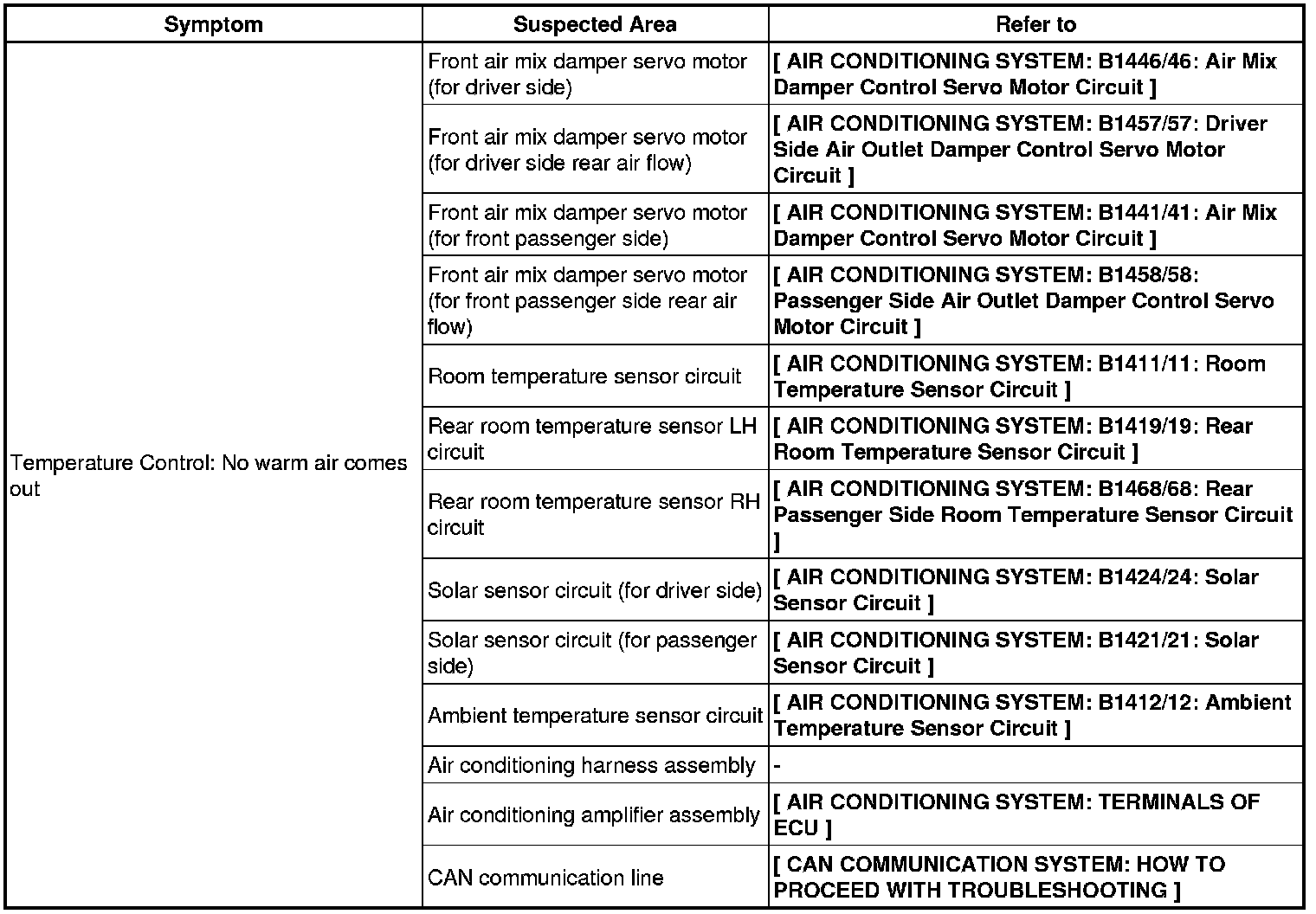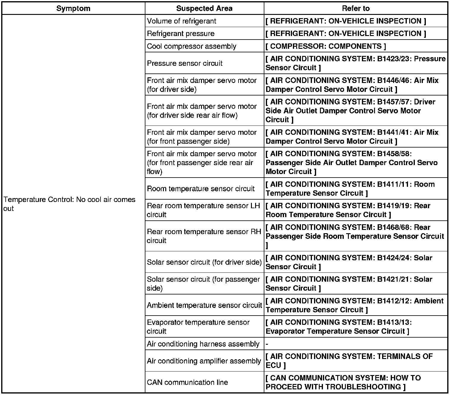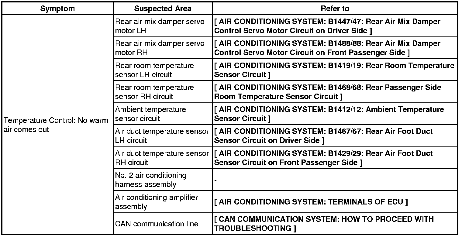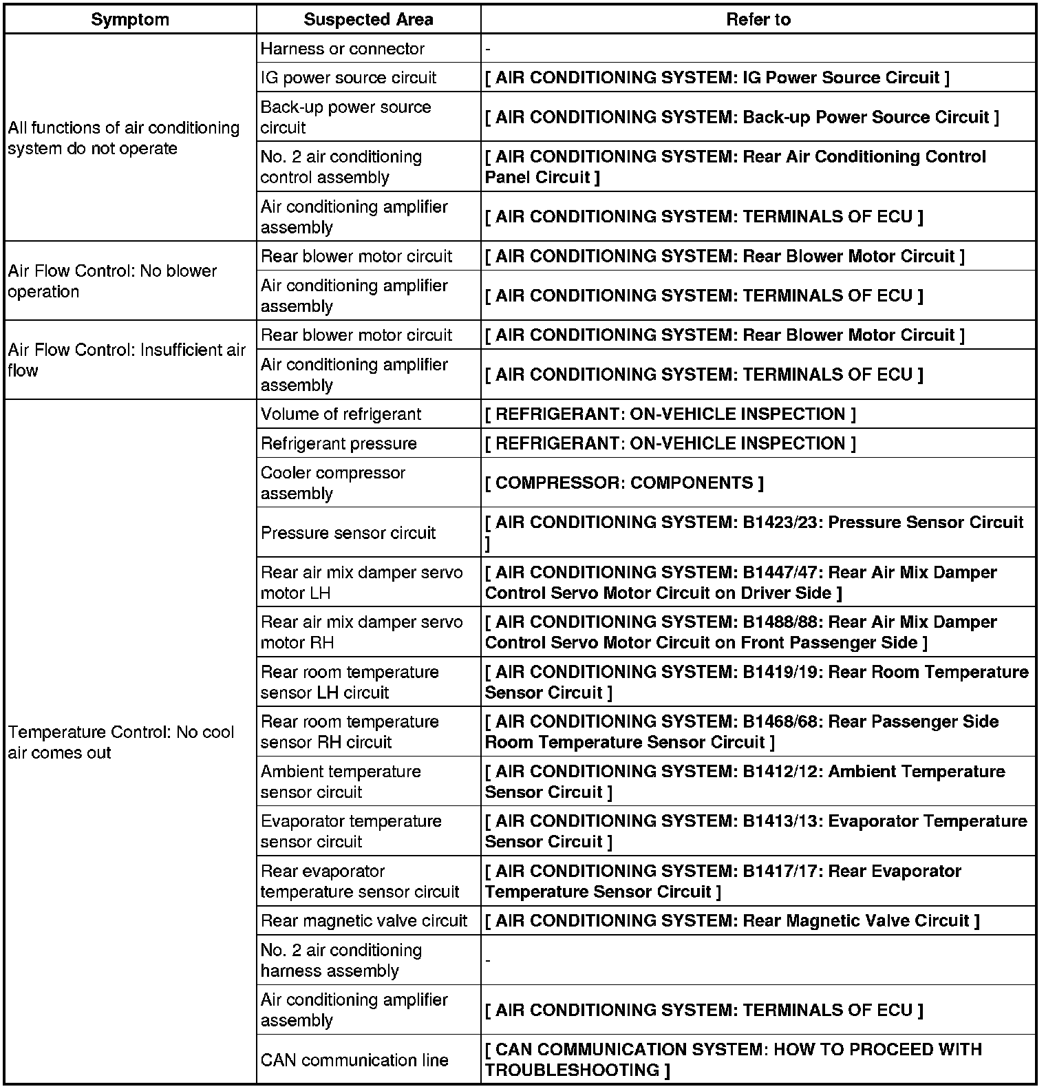 HEATING / AIR CONDITIONING: AIR CONDITIONING SYSTEM: PROBLEM SYMPTOMS TABLE