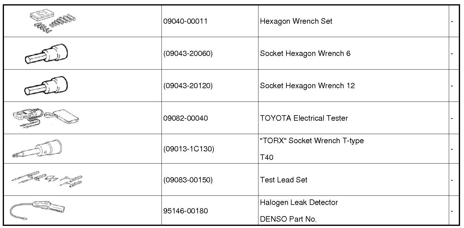 PREPARATION: HEATING / AIR CONDITIONING: RECOMMENDED TOOLS