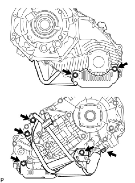 (e) Remove the drain plug and gasket, and drain the transfer oil.