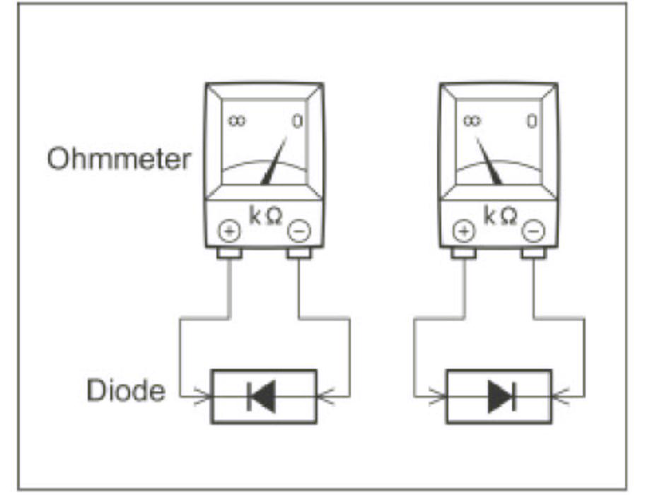 When contacting the negative lead to the diode positive side and the positive lead to the negative side, there should be continuity.