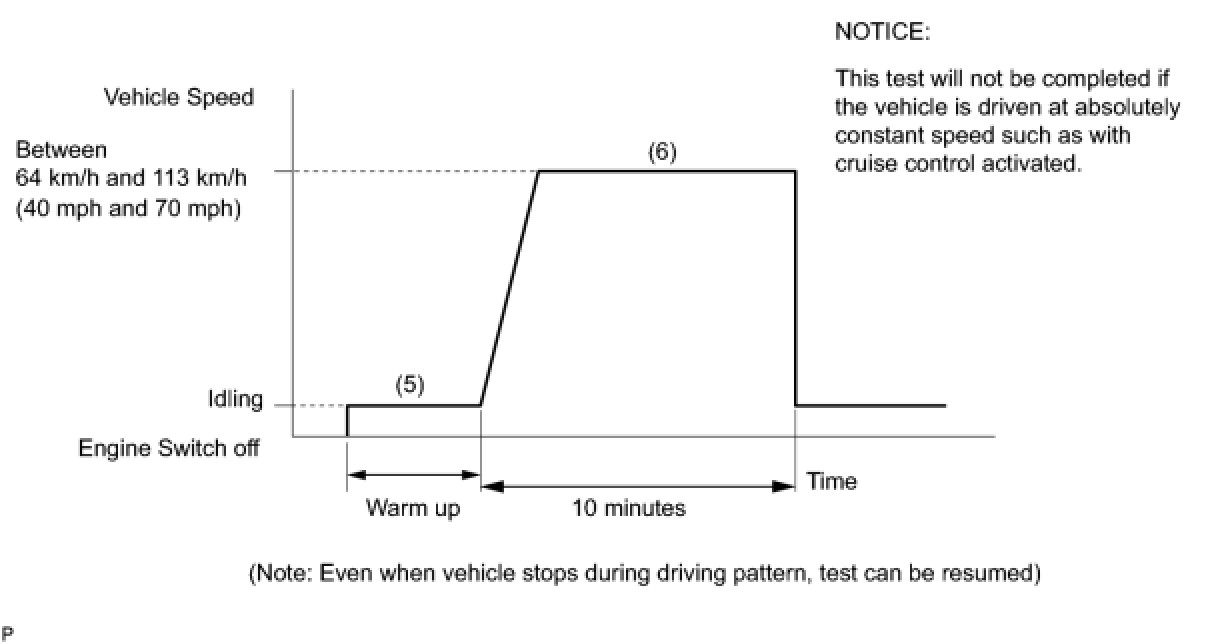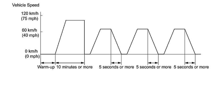(6) Drive the vehicle at between 60 km/h (40 mph) and 120 km/h (75 mph) for at least 10 minutes.
