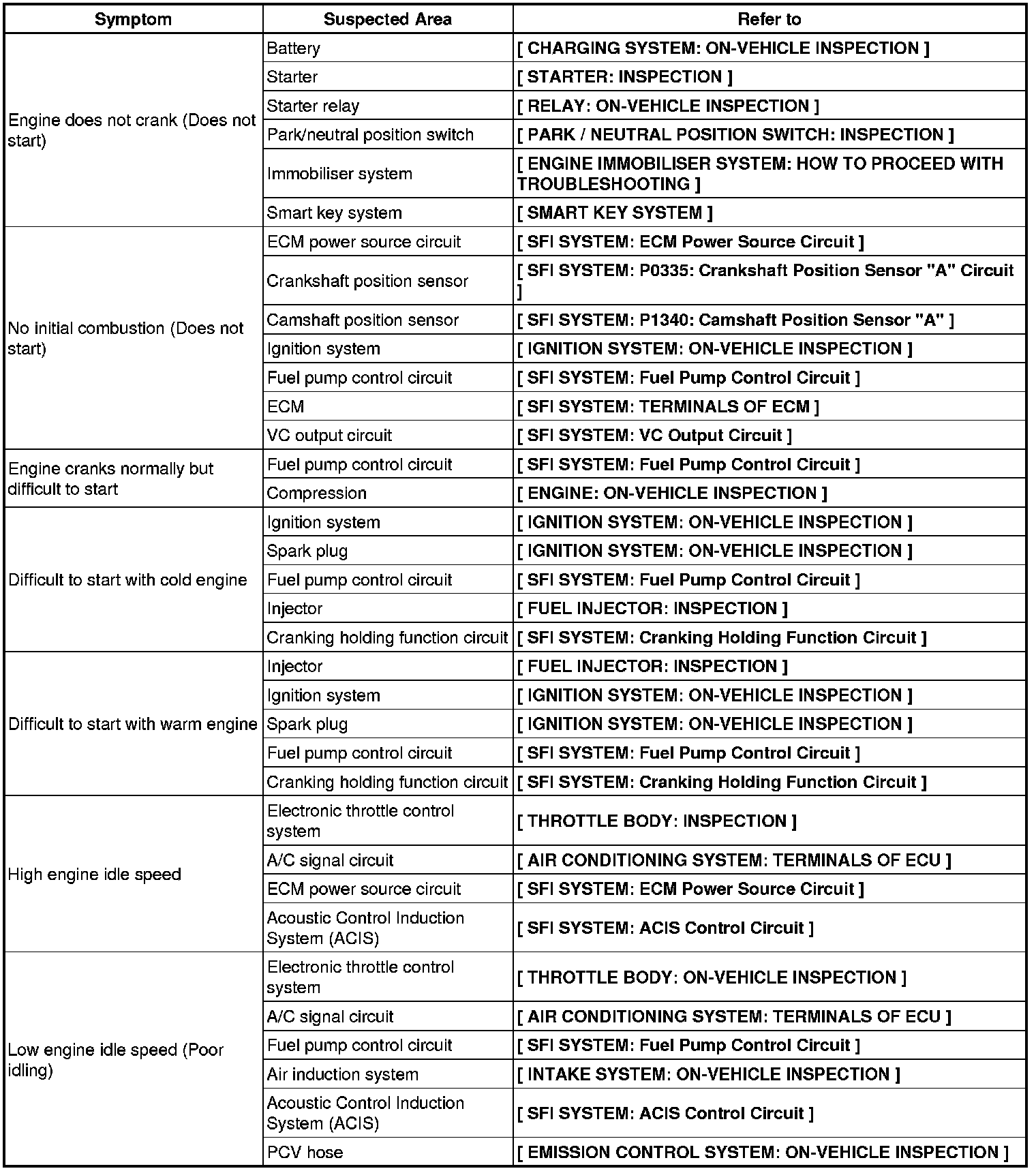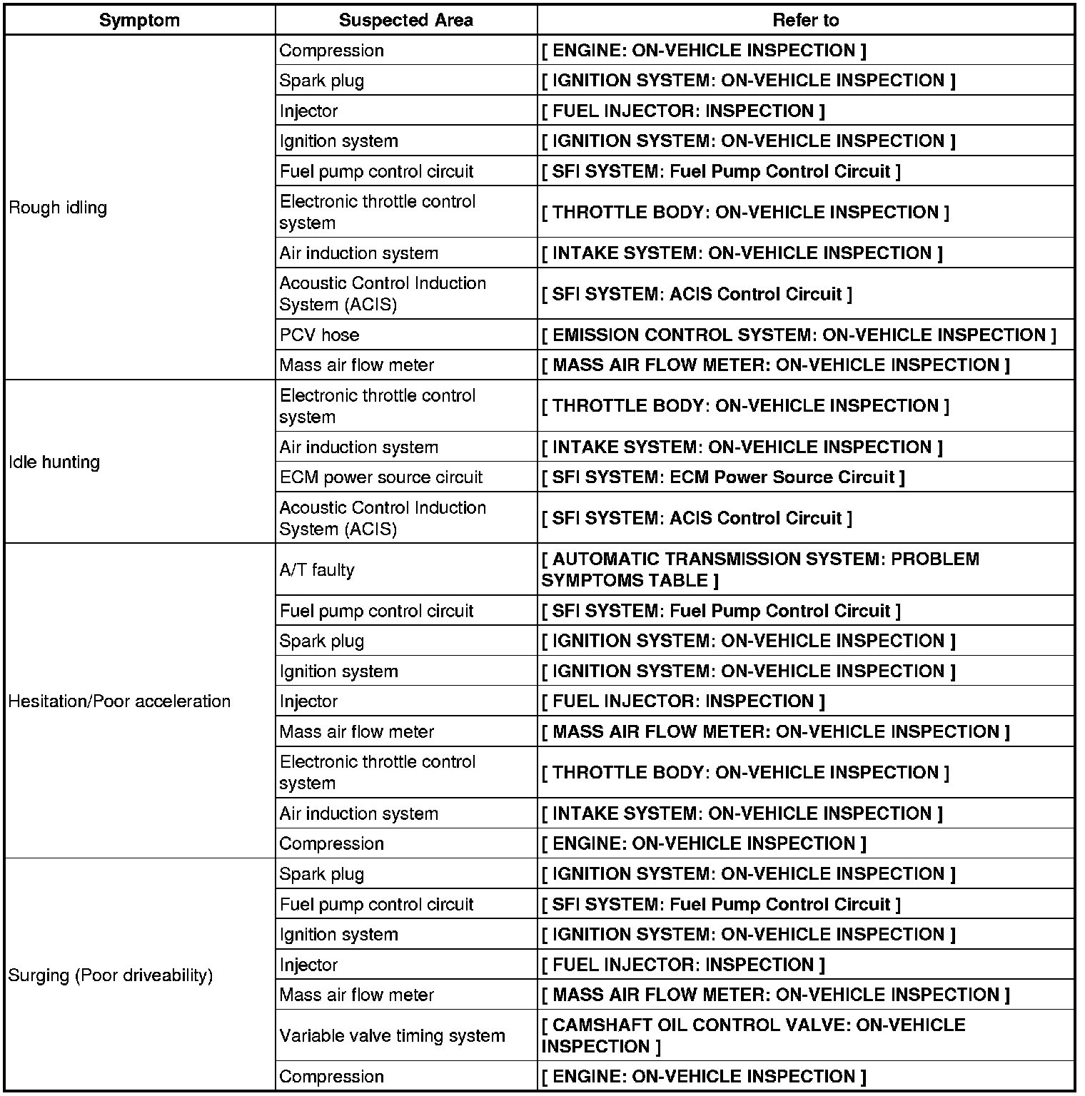 3UR-FE ENGINE CONTROL: SFI SYSTEM: PROBLEM SYMPTOMS TABLE