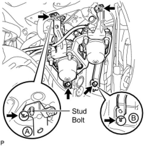 (b) Connect the clamp to the No. 3 hose shown in the illustration below labeled B. Then insert the clip of the clamp into the bracket.