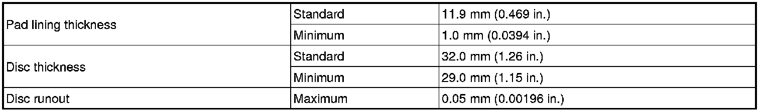 SPECIFICATIONS: BRAKE (FRONT): SERVICE DATA