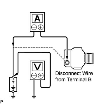 (1) Disconnect the wire from terminal B of the generator, then connect it to the negative (-) lead of an ammeter.
