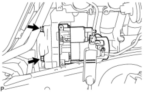 (b) Install the starter with the 2 bolts.