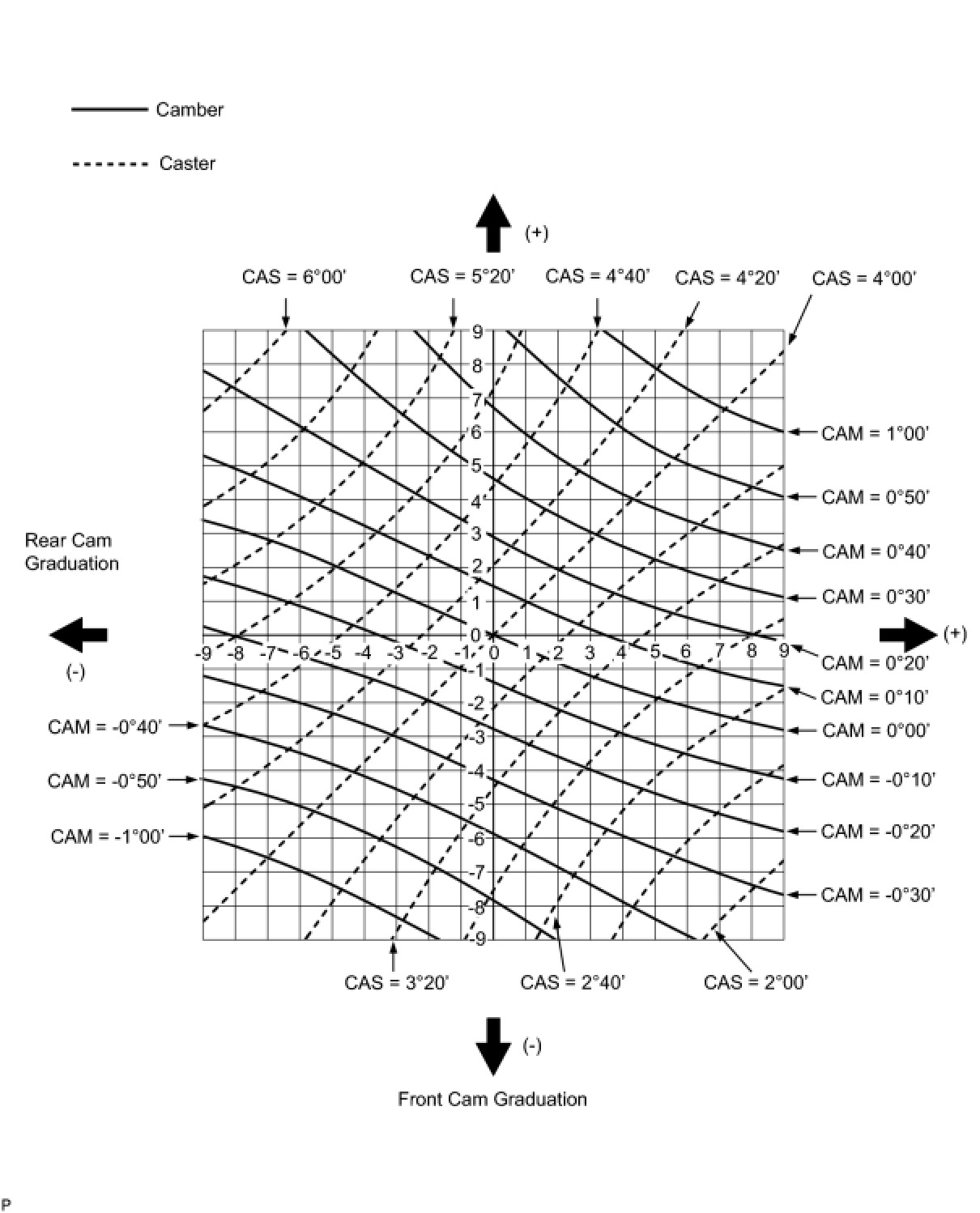 (4) As shown in the chart, read the distance from the marked point to 0, and adjust the front and/ or rear adjusting cams accordingly.