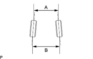 If the right and left inside wheel angles differ from the specified range, check the right and left rack end lengths.