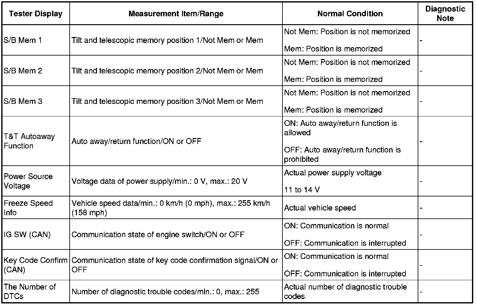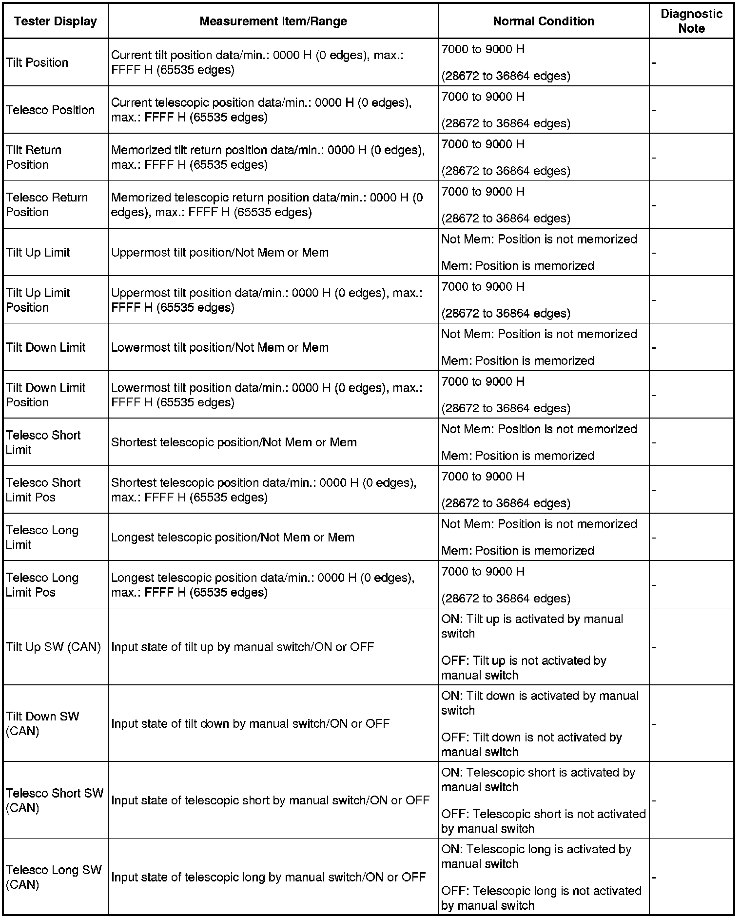 STEERING COLUMN: POWER TILT AND POWER TELESCOPIC STEERING COLUMN SYSTEM: FREEZE FRAME DATA