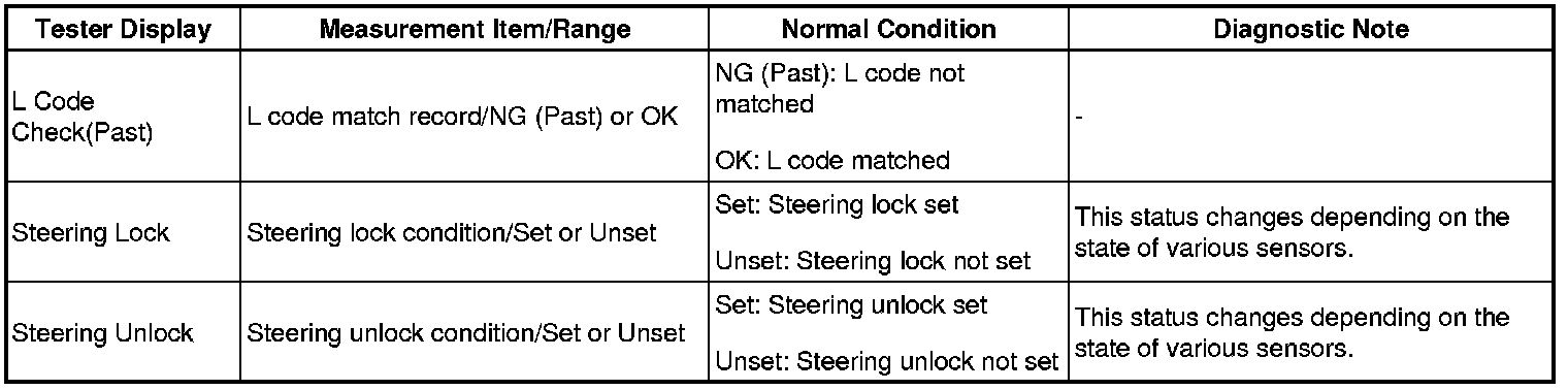 STEERING COLUMN: STEERING LOCK SYSTEM: DATA LIST / ACTIVE TEST