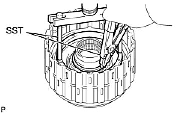 (d) Place SST on the direct clutch balancer, and compress the return spring with a press.