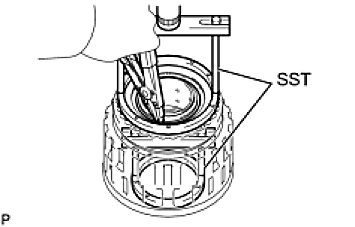 (d) Using SST, install the snap ring.