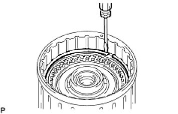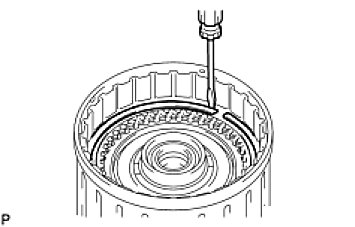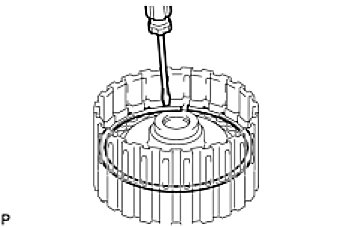 (c) Using a screwdriver, install the snap ring to the clutch drum.