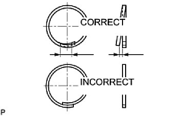 (e) Set the end gap of the snap ring in the piston as shown in the illustration.