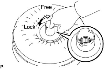 (1) Press on the serrations of the starter with a finger and rotate it. Check that it rotates smoothly when turned clockwise and locks when turned counterclockwise.