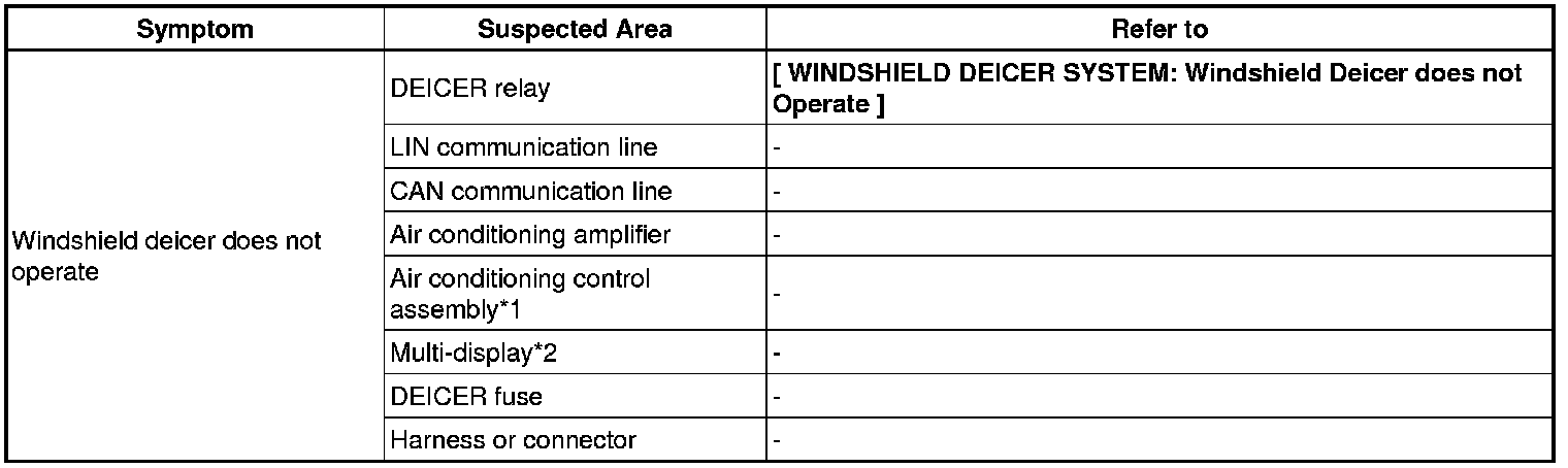 WINDOW / GLASS: WINDSHIELD DEICER SYSTEM: PROBLEM SYMPTOMS TABLE
