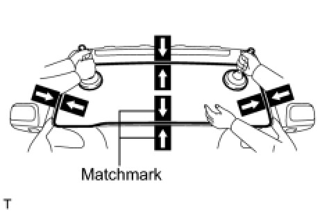 (3) Place matchmarks on the glass and vehicle body on the locations indicated in the illustration.