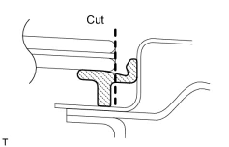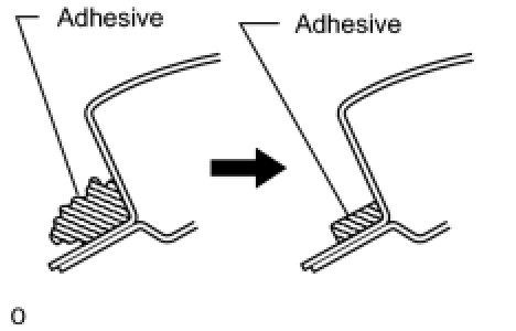 (1) On the contact surface of the vehicle body, use a knife to cut away excess adhesive as shown in the illustration.