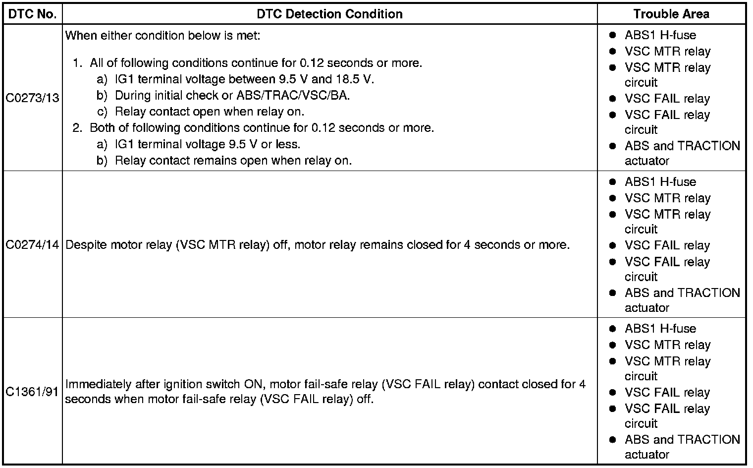 BRAKE CONTROL: VEHICLE STABILITY CONTROL SYSTEM: C0273/13: Open in ABS Motor Relay Circuit