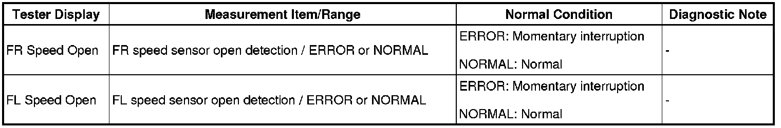 DTC C1272/72 - Low Output Signal of Front Speed Sensor LH (Test Mode DTC)