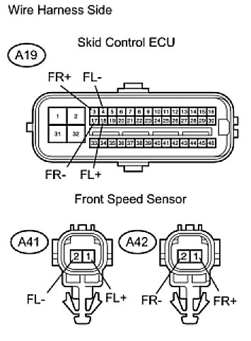 7. CHECK WIRE HARNESS (SKID CONTROL ECU - FRONT SPEED SENSOR)