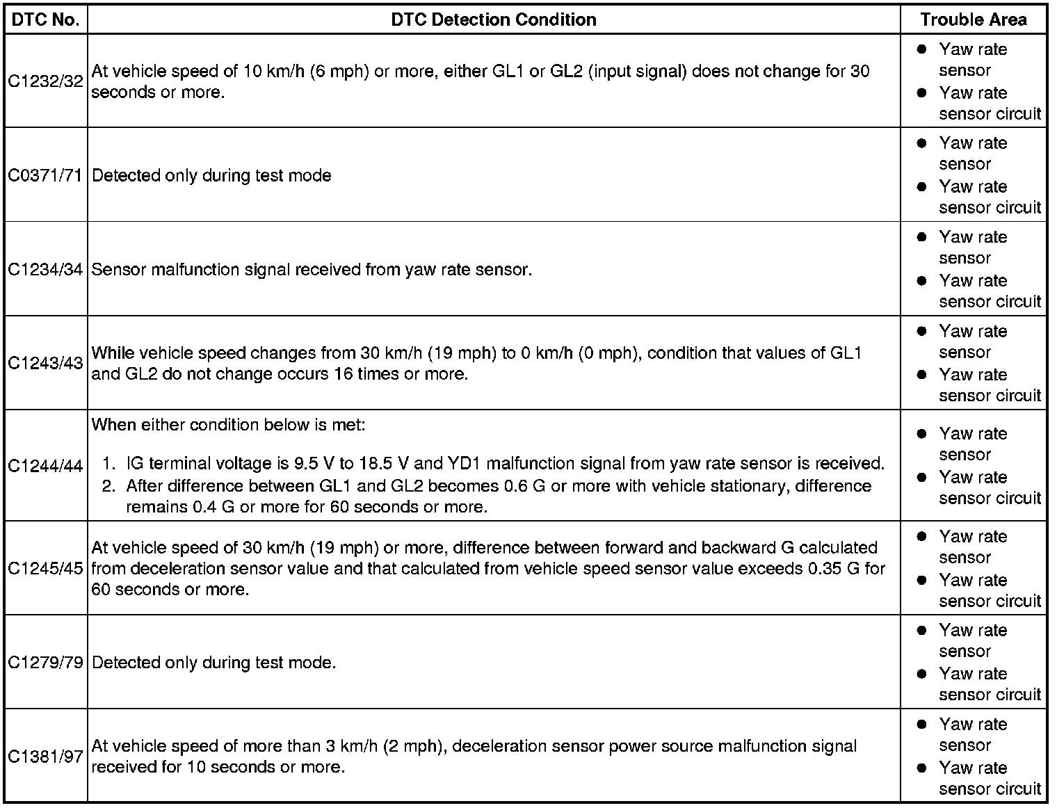 DTC C0371/71 - Yaw Rate Sensor (Test Mode DTC)