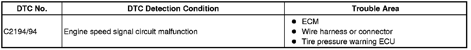 TIRE AND WHEEL: TIRE PRESSURE WARNING SYSTEM: C2194/94: Engine Speed Signal Error (Test Mode DTC)