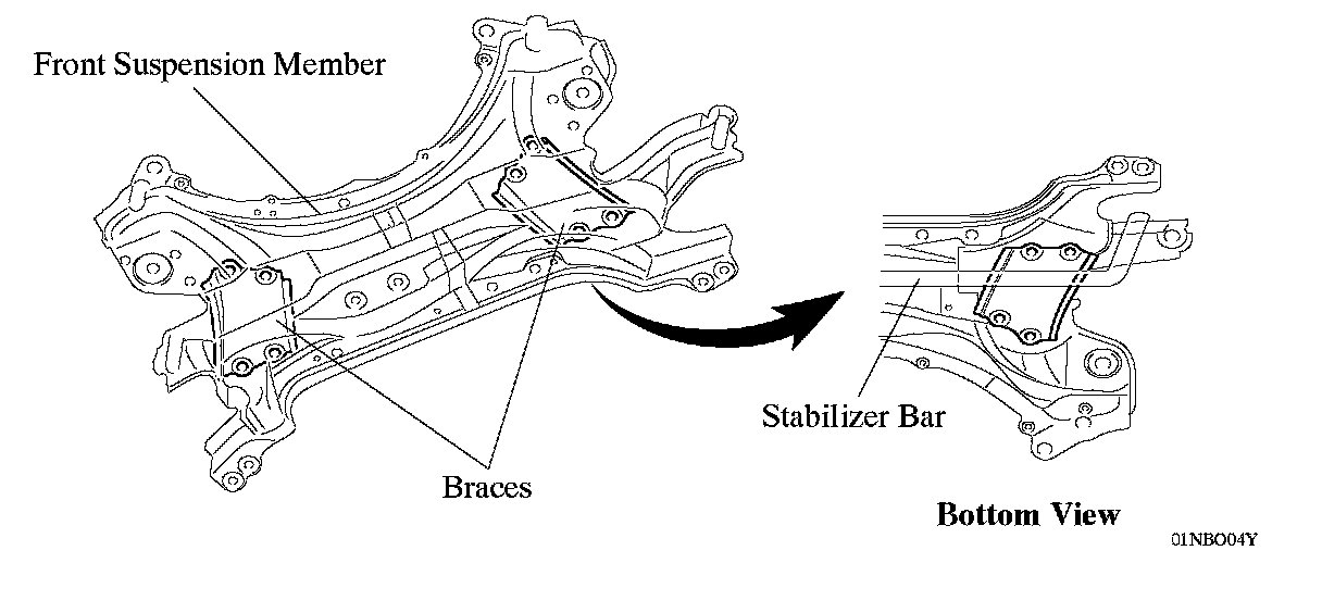 ^ Braces have been provided at the bottom of the front suspension member to help ensure the rigidity of the front suspension member in the longitudinal direction.