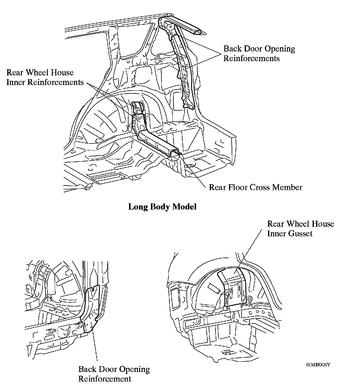 ^ Reinforcements have been located effectively around the back door opening and around the area to which the rear suspension is mounted, in order to help ensure the torsional rigidity of the body.